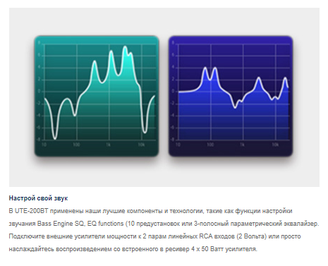 - Еквалайзер: Лінійна, Поп, Рок, Новости, Джаз, Танцювальна музика, Хіп-Хоп, Легка музика, Кантрі, Класична музика